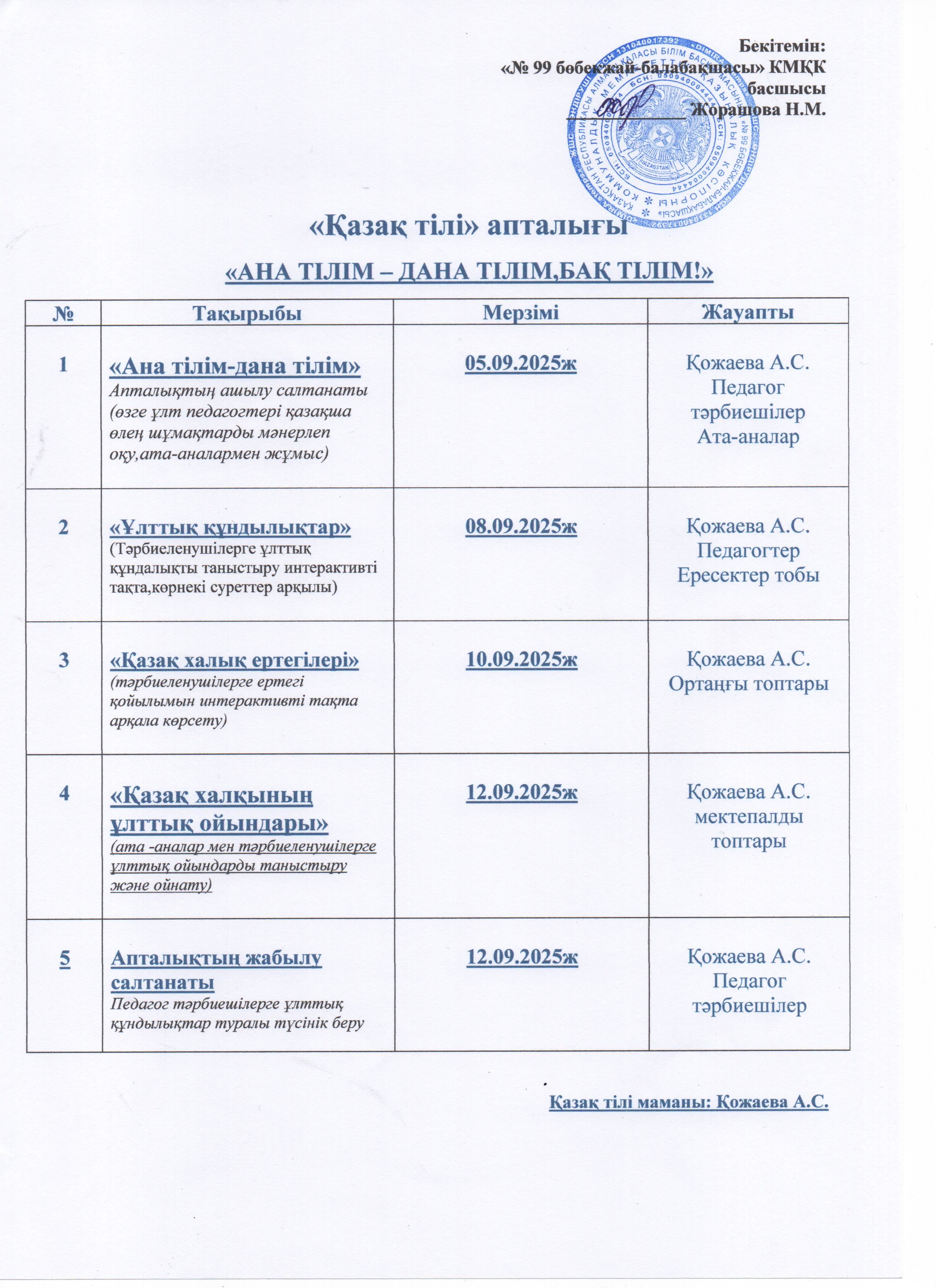 » Қазақ тілі апталығы 2025-2026 оқу жылы